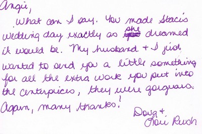 We love hearing from brides after the ceremony too! Here's what just a few have sent to us.